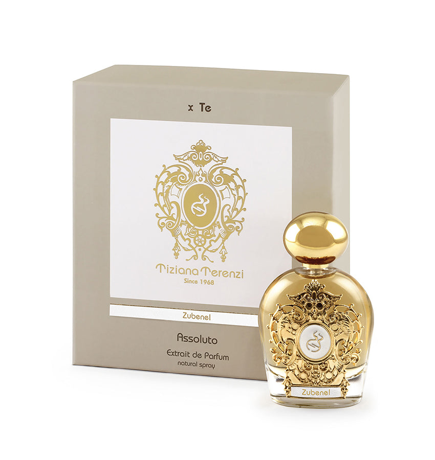 Una delle stelle più importanti e famose è Zubenel della costellazione di Libra. Prosegue il viaggio intergalattico dei fratelli Terenzi che si spingono oltre i confini della profumeria artistica. Il loro nuovo viaggio si orienta verso la costellazione di Libra, un percorso mirato a svelare i segreti della sua piramide olfattiva, un’impresa compositiva con nuove e affascinanti vibrazioni sensoriali. Le materie prime che compongono l’Assoluto diventano protagoniste di quest’avventura quasi onirica, donando alla fragranza un’estensione di profondità e significato che va al di là delle semplici note aromatiche. Questa creazione cattura l’essenza delle stelle, è avvolta in molecole estremamente preziose, la cui composizione si ispira all’architettura celeste, una sinfonia di note rare e preziose, che evocano la grandezza e il mistero del firmamento. Zubenel crea un’atmosfera sconvolgente e inebriante, come se la bottiglia preziosa che la racchiude, contenesse la luce stellare stessa. La fragranza apre con la magica intensità dell’Ambra Grigia che si fonde all’incenso Frank avvolti dalla profondità e dalla dolcezza unica dell’Ambrette Australiana. La testa molto ricca e preziosa, ma al contempo estremamente raffinata e gentile si adagia su un cuore molto intenso, dove le note di Cioccolato fondente Italiano aggiungono intrigo e calore, enfatizzate dalla potenza dell’Ambra Grigia a attenuate dalla dolcezza della Vaniglia Bourbon del Madagascar. L’intera creazione si fonda su una base di legni preziosi con il Patchouli Indiano che si mischia al Sandalo Australiano, che con calore e mistero avvolge anche il legno di Betulla di Romagna, il tutto inebriato dalla dolcezza persistente del Caramello Turco. Zubenel è una creazione elegante e celebrativa di un’infinita bellezza, riflessa in una fragranza che incanta e affascina le più audaci personalità che avranno il privilegio di indossarla.
